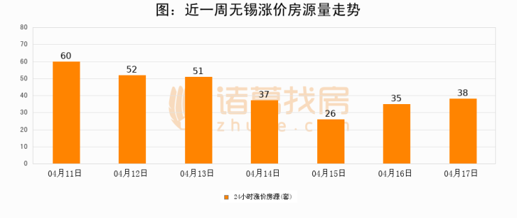 根据诸葛找房数据显示,无锡24小时涨价房源量为38套,较04月16日增加3套,环比上涨8.6%。与此同时,涨价房源占比小幅扩大,业主信心有所提升。