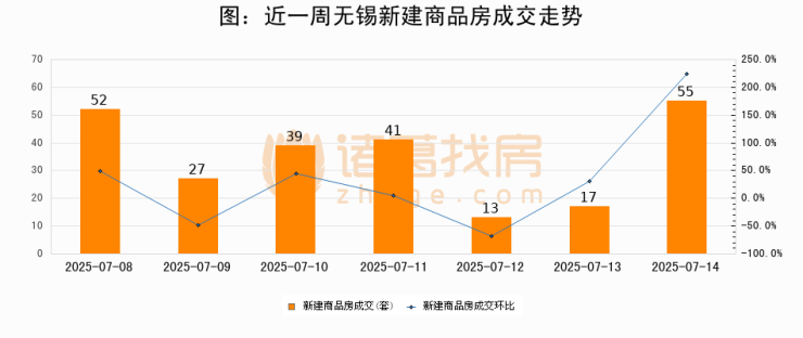 【无锡成交日报】07月14日新房成交55套、二手房231套;涨价房源17套