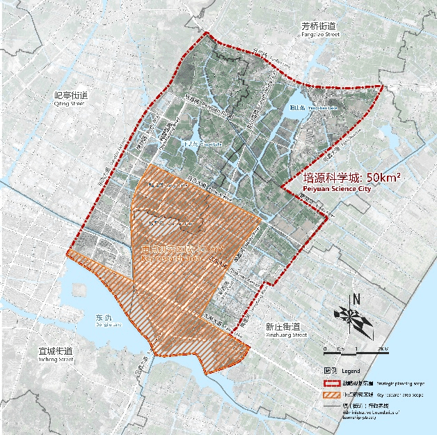 培源科学城规划设计范围包括3个层次,其中战略规划总面积约50平方公里;核芯区概念性城市设计需在重点研究区域内选取8—10平方公里开展城市设计;启动区详细城市设计需在核芯区范围内选取1—2平方公里开展详细城市设计。
