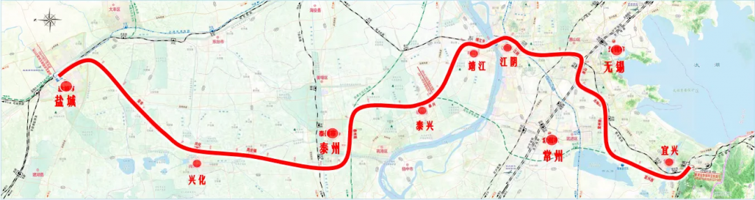 据悉,盐泰锡常宜铁路北起盐城东站,经兴化进入泰州市区,向东南经泰兴、靖江后,通过江阴第三过江通道跨越长江,在江阴进入无锡境内,经常州东南部后止于宜兴市。设计时速350公里/小时。
