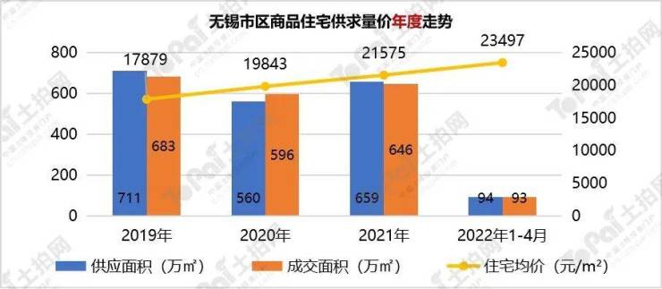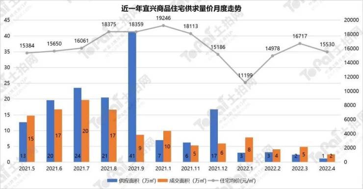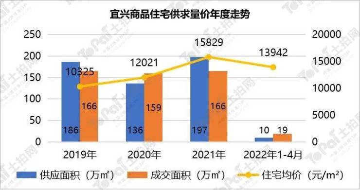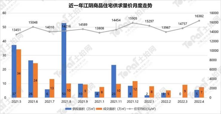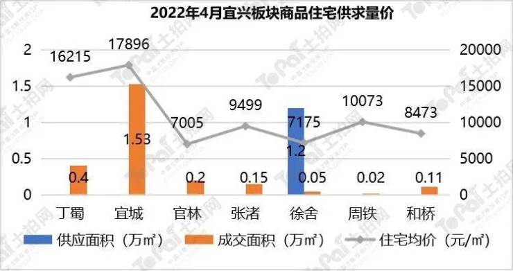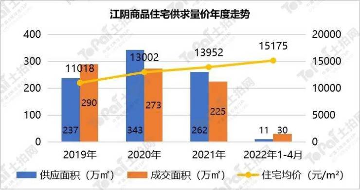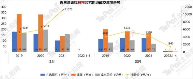 2022年4月,江阴无宅地成交;宜兴成交1宗商住地块,成交总价1.47亿元。