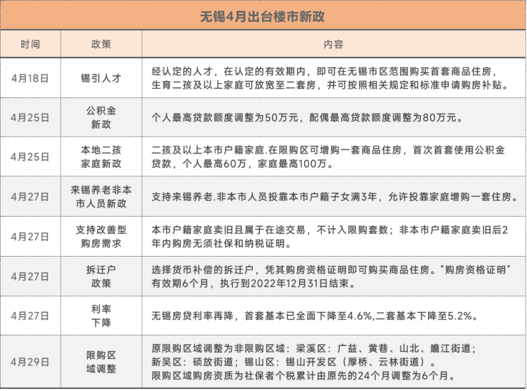 继“清明”假期前后多地调整优化楼市政策后,无锡也加入到了“松绑”楼市政策的行列。