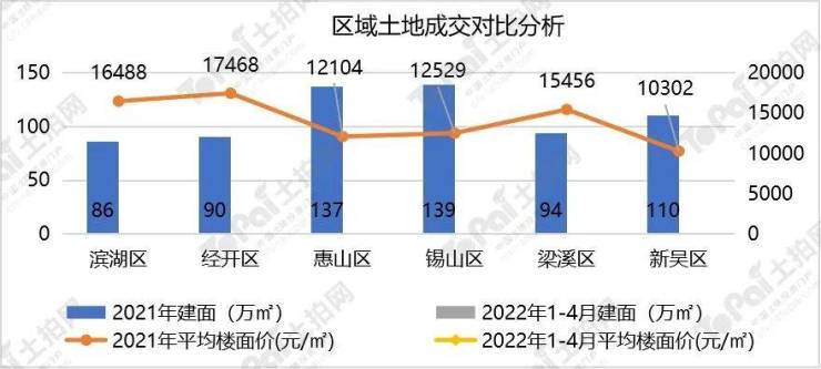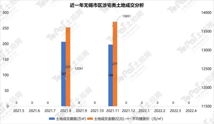 2022年4月无锡市区暂无涉宅用地供应和成交。无锡首批集中供地于5月7日开拍,共出让8宗地块,总面积约57.66万㎡,起拍总价约103.9亿元。2022年第二批次集中出让拟于二季度中发布。