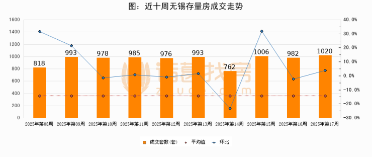 【无锡成交周报】第17周新房成交433套,二手房1020套,涨价房源682套