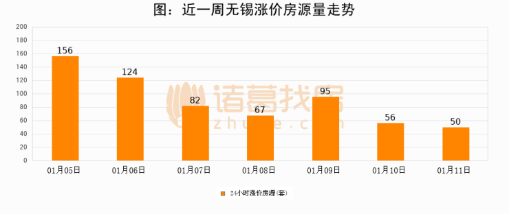 根据诸葛找房数据显示,无锡24小时涨价房源量为50套,较01月10日减少6套,环比下降10.7%。与此同时,涨价房源占比小幅回落,对于购房者来说是一个入市窗口期,购房者可抓住时机入市。