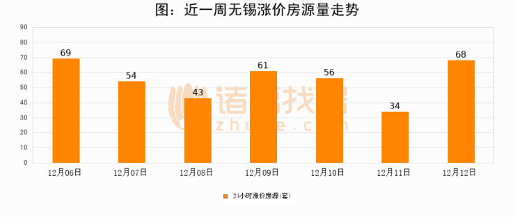 根据诸葛找房数据显示,无锡24小时涨价房源量为68套,较12月11日增加34套,环比上涨100%。与此同时,涨价房源占比小幅扩大,业主信心有所提升。