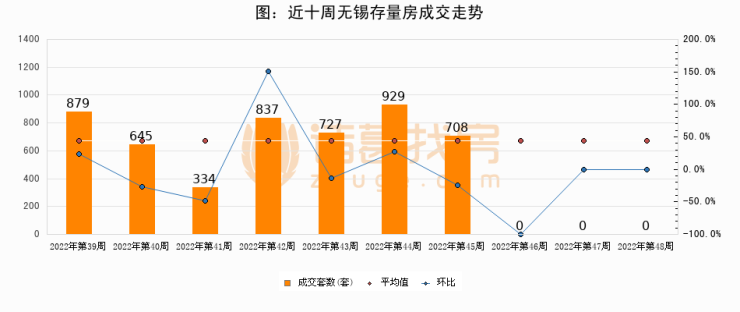 存量房方面,第48周无锡存量房成交0套,较上周持平。从近十周成交走势来看,周均成交套数为505套,本周低于平均水平100%。