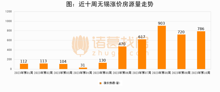从调价房源来看,第10周无锡涨价房源786套,较上周上涨9.2%。与此同时,10周涨价房源占比回落0.1个百分点,业主信心小幅波动,购房者可则需入市。