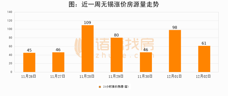 根据诸葛找房数据显示,无锡24小时涨价房源量为61套,较12月01日减少37套,环比下降37.8%。与此同时,涨价房源占比小幅回落,对于购房者来说是一个入市窗口期,购房者可抓住时机入市。