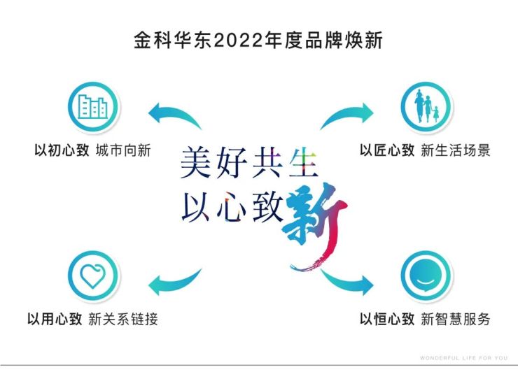 万物随时代更迭,金科16载初心不变。循着“追求美好”的底层逻辑,2022年,金科华东重新思考新时代中人与城市、人与社区、人与生活、人与人的关系,因此提出“美好共生 以心致新”的品牌主张。