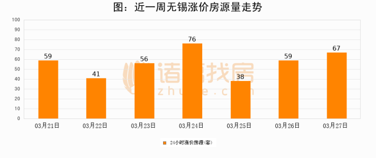 根据诸葛找房数据显示,无锡24小时涨价房源量为67套,较03月26日增加8套,环比上涨13.6%。与此同时,涨价房源占比小幅扩大,业主信心有所提升。