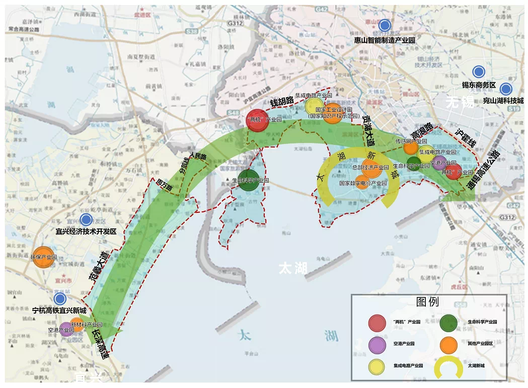一轴,为“蠡湖大道—轨道1号线”城市功能延展轴。