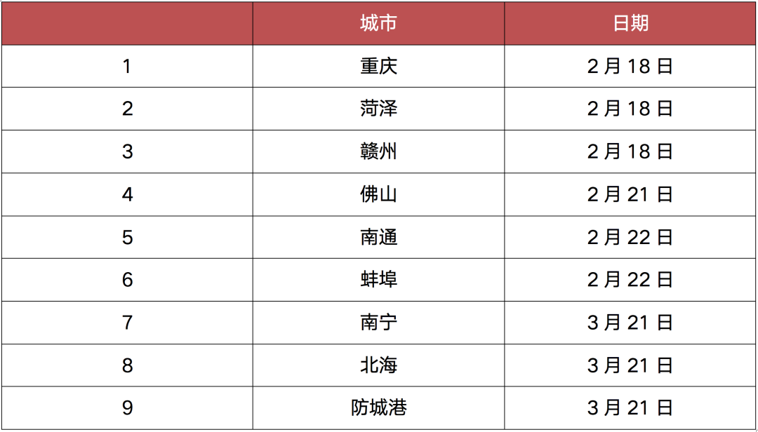 表:2022年一季度下调首付比例城市