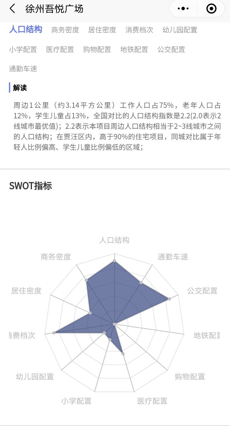 在消费水平上,周边餐饮消费客单价48元,相当于二三线城市水平,在贾汪区内也属于TOP20的水平,属于高档消费区域。