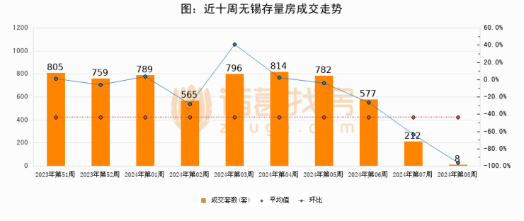 存量房方面,第07周无锡存量房成交8套,较上周减少204套,环比下降96.2%。从近十周成交走势来看,周均成交套数为610套,本周低于平均水平98.7%。