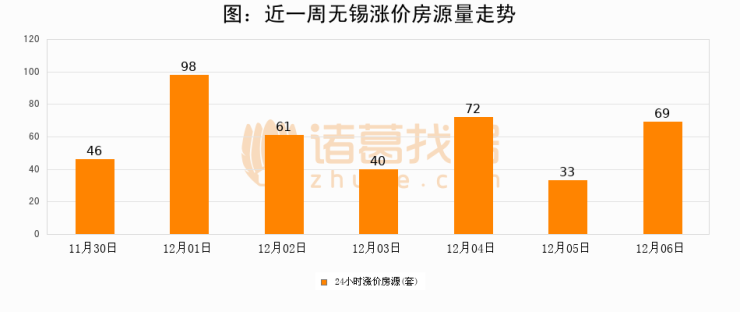 根据诸葛找房数据显示,无锡24小时涨价房源量为69套,较12月05日增加36套,环比上涨109.1%。与此同时,涨价房源占比小幅扩大,业主信心有所提升。