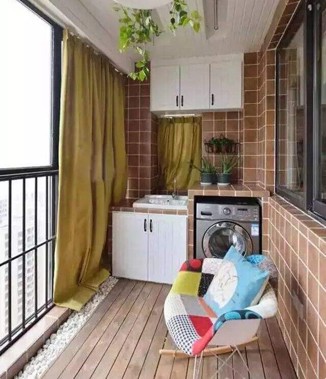 封闭式阳台:如果封闭式阳台并不打算做晾衣区域的,其实没必要给墙面贴瓷砖。