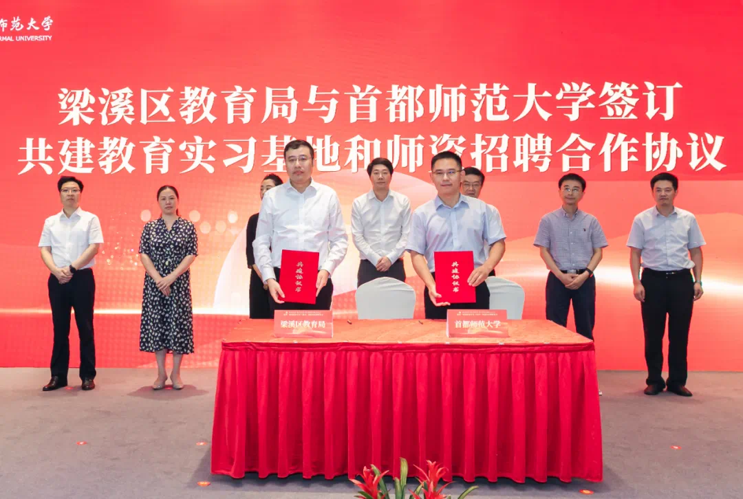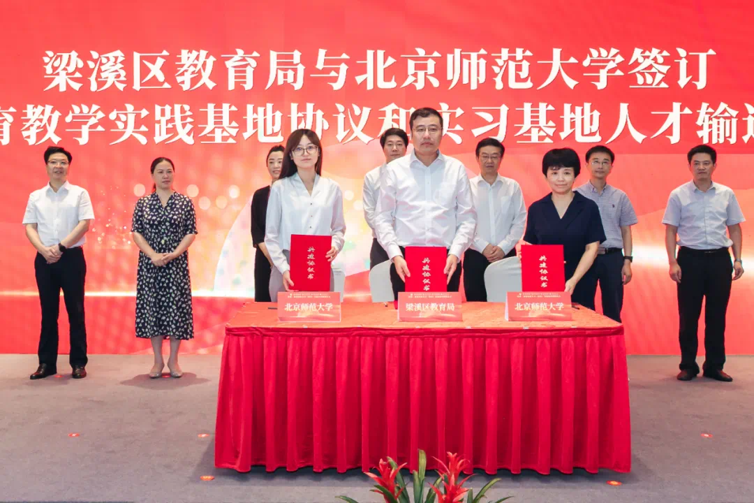 梁溪区教育局与北京师范大学、首都师范大学、东北师范大学、华中师范大学、分别签订实习(就业)基地协议,实现地方、高校、学校三方可持续发展