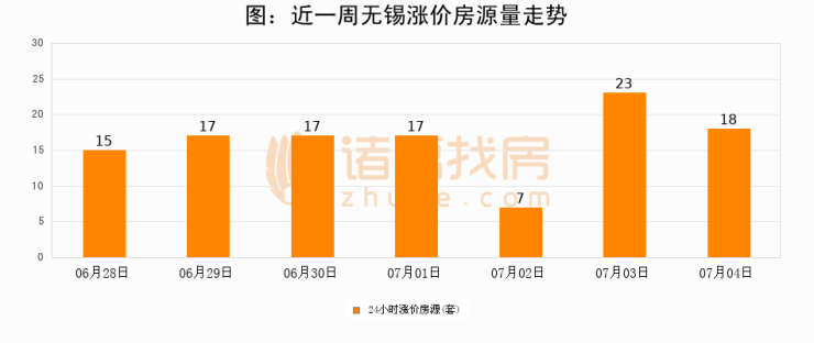 根据诸葛找房数据显示,无锡24小时涨价房源量为18套,较07月03日减少5套,环比下降21.7%。与此同时,涨价房源占比小幅回落,对于购房者来说是一个入市窗口期,购房者可抓住时机入市。