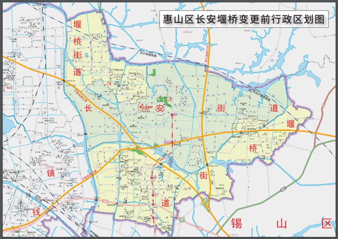 (附件1:惠山区长安堰桥变更前行政区划图)