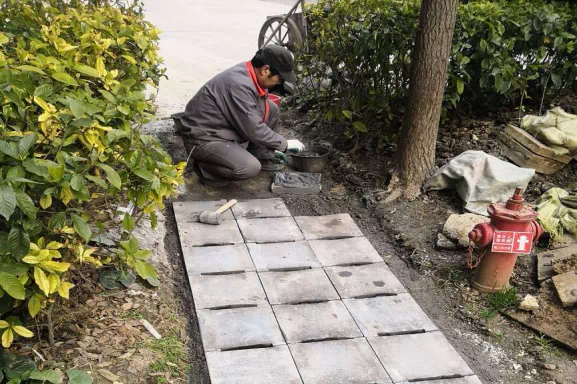 工程师傅更换喷泉水管,使景观池恢复往日生机