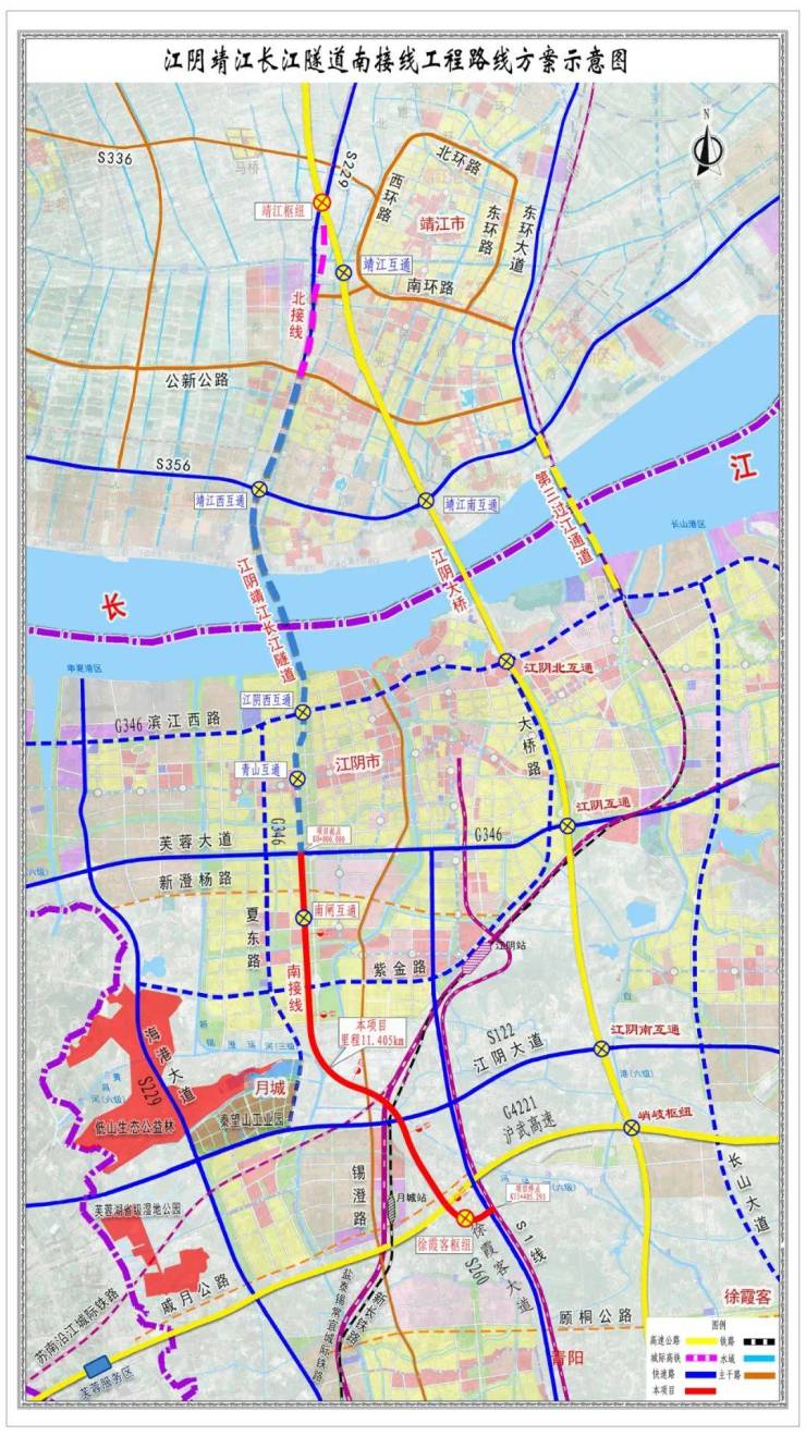 江阴靖江长江隧道南接线工程是省重点项目江阴靖江长江隧道的接线工程,起于江阴芙蓉大道(G346),顺接江阴靖江长江隧道,止于与沪武高速(G4221)交叉处,并衔接徐霞客大道(S260),全长11.4km。项目建成后,将大大缓解江阴大桥交通压力,对落实长三角一体化、完善区域高速公路网络、促进锡常泰组团跨江融合和澄靖一体化发展等均具有重大意义。
