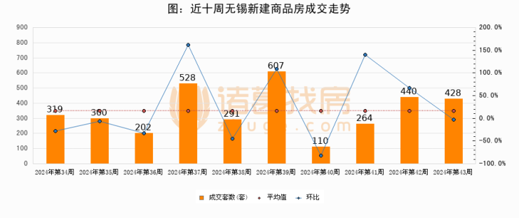 【无锡成交周报】第43周新房成交428套,二手房1012套,涨价房源1348套