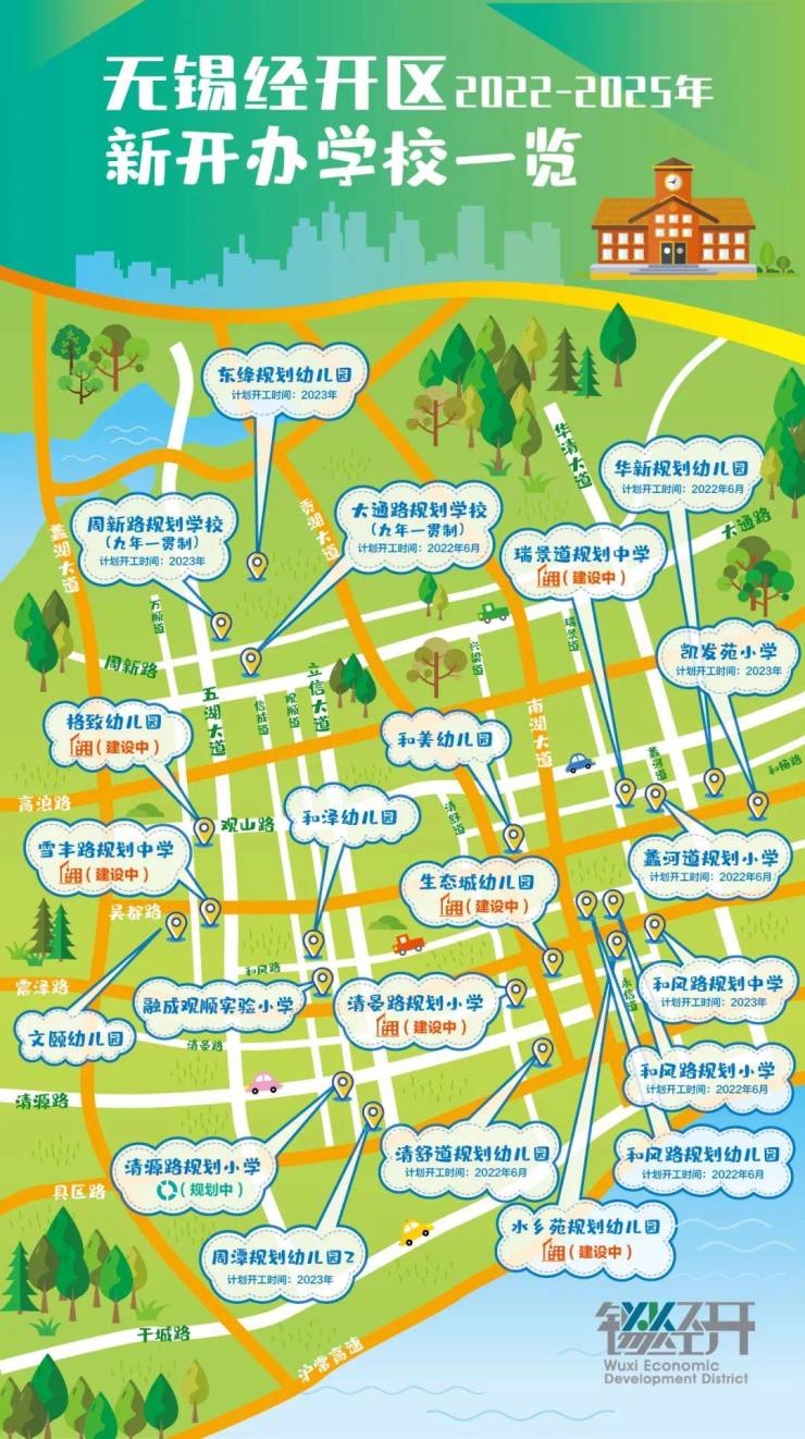 学校:雪丰路规划中学、瑞景道规划中学、大通路规划学校(九年一贯制)、水乡苑规划幼儿园、清晏路规划小学、蠡河道规划小学(原城东规划小学)、和风路规划小学、生态城幼儿园、和风路规划幼儿园、清舒道规划幼儿园、凯发苑小学、观顺道规划小学(南)、和风路规划中学、周新路规划学校(48+24)、东绛规划幼儿园、华新规划幼儿园(阳光城)、周潭规划幼儿园、华庄中学改扩建。