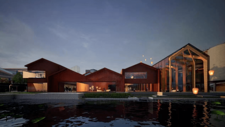 华庄粮管所改造更新项目:占地43.2亩,总建筑面积约3.2万㎡,包括现有华庄粮油管理所、北侧民房等建构筑物;改造筒仓、烘干房以及生产产房,保留原有小红房,新建沿街集中商业,历史长轴以及地景建筑。