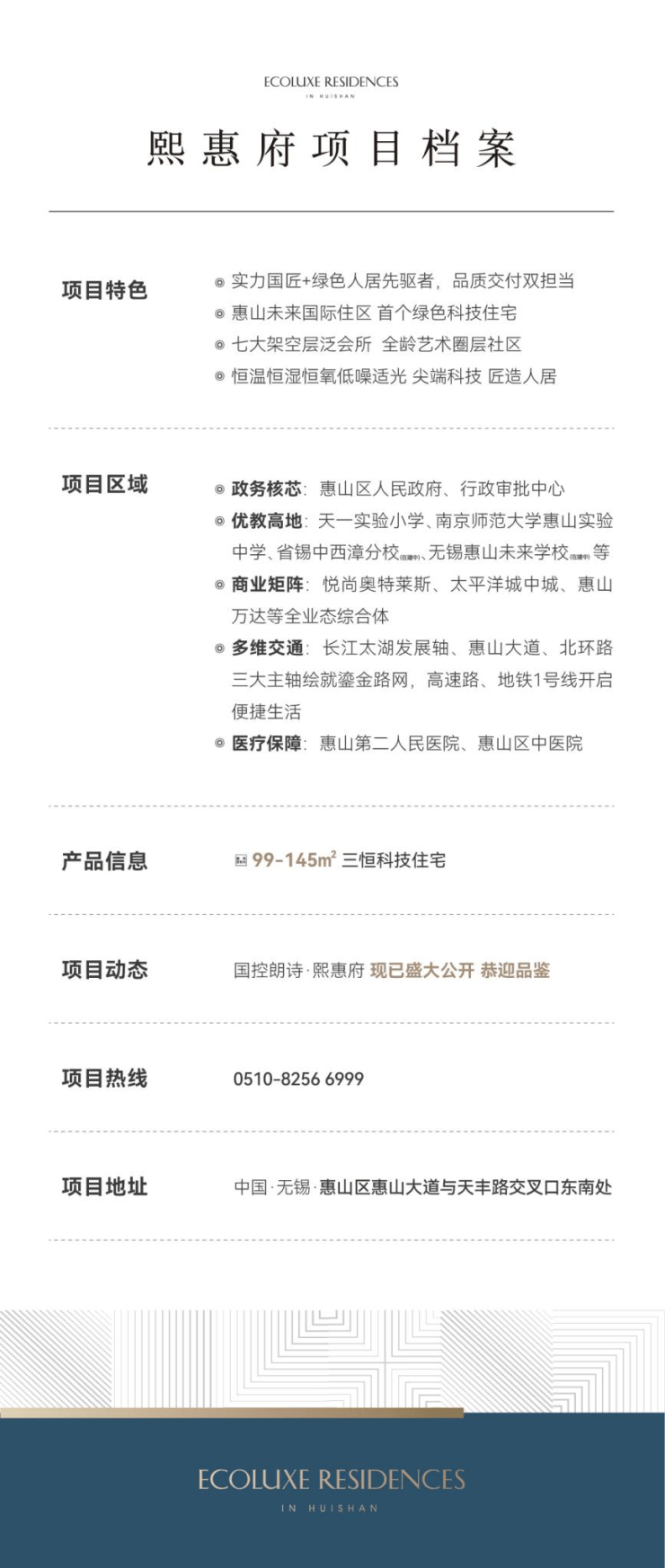 熙惠府作为惠山主城未来国际住区内首个高品质楼盘不负众望,用舒适和健康丈量幸福的宽度,打造颠覆想象的科技住宅!于产品力之上追求极致的“细节”,打造更好的品质生活场。