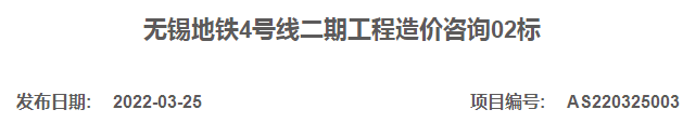 上周五(3月25日),无锡地铁官网发布了“无锡地铁4号线二期工程造价咨询01、02标”招标公告。