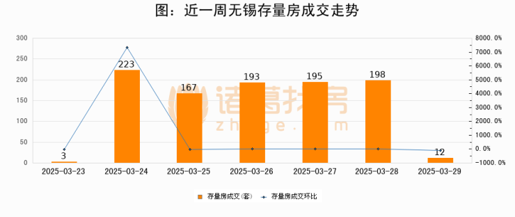 从存量房来看,2025年03月29日无锡存量房单日成交12套,比昨日减少186套,环比下降93.9%。从近一周存量房成交来看,无锡存量房日均成交套数为141套,03月29日单日成交12套,低于近一周平均水平91.5%。