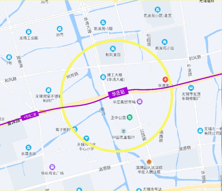 华庄站位于震泽路与华清大道交叉路口东侧,沿震泽路敷设。