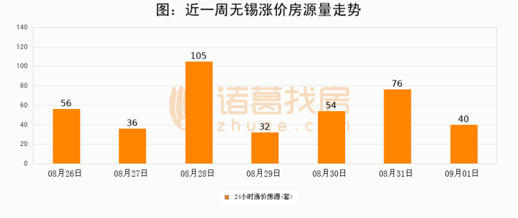 根据诸葛找房数据显示,无锡24小时涨价房源量为40套,较08月31日减少36套,环比下降47.4%。与此同时,涨价房源占比小幅回落,对于购房者来说是一个入市窗口期,购房者可抓住时机入市。