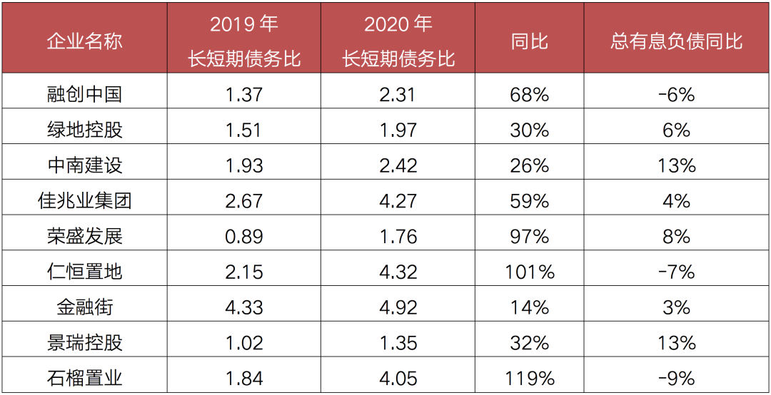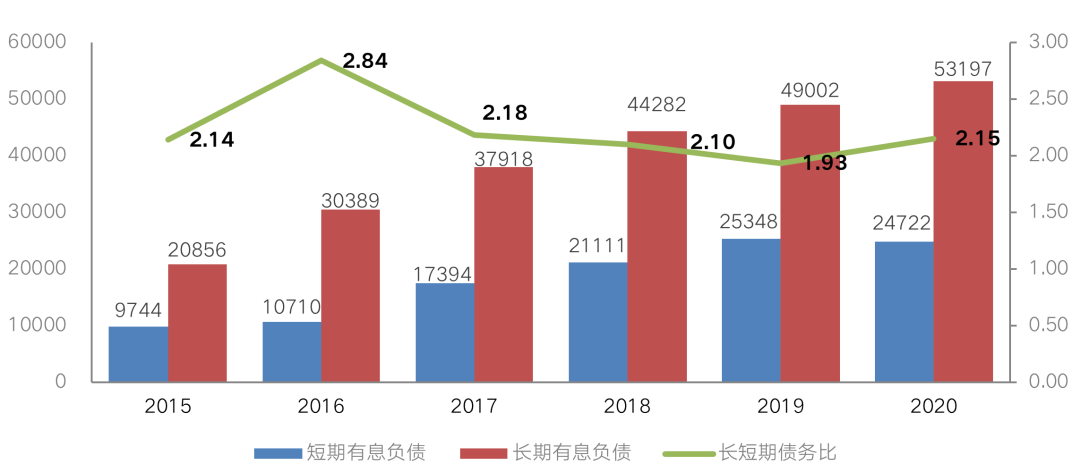 总体来看,过半企业2020年债务结构优化,部分企业表现突出,预计未来企业的长短期债务比也将得到进一步优化。