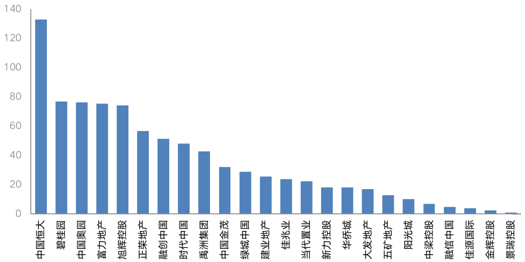 图:截至2021年6月16日重点房企债券赎回规模(包括永续债)(亿元)