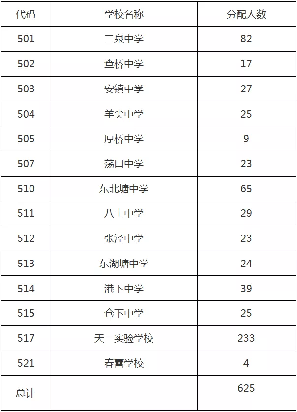 2021年江苏省天一中学分配计划招生625人,具体分配情况公告如下: