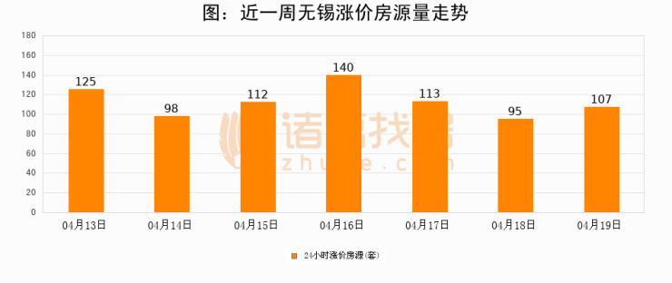 根据诸葛找房数据显示,无锡24小时涨价房源量为107套,较04月18日增加12套,环比上涨12.6%。与此同时,涨价房源占比小幅扩大,业主信心有所提升。