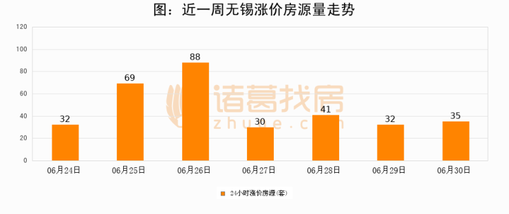 根据诸葛找房数据显示,无锡24小时涨价房源量为35套,较06月29日增加3套,环比上涨9.4%。与此同时,涨价房源占比小幅扩大,业主信心有所提升。