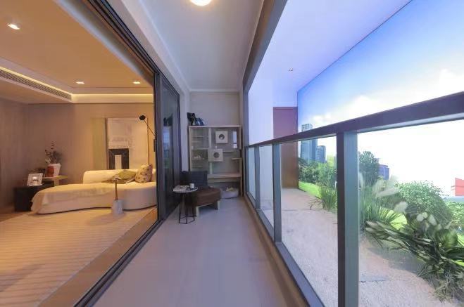 百郦华庭设计有“跑道式”阳台, 宽1.5米,纵长7米,连通客厅和次卧,构成一条洄游动线。这个宽景阳台将不只是观景、晾衣服的区域,更可幻变为阳光花房、阳光办公区、茶室、儿童娱乐区等, 一张小茶几,一款摇摇椅,让阳台成为悠闲的休憩处;若再放上几株盆栽,搭出一个花架,让青藤在阳台任意攀爬,一个专属的空中花园便已打造而成……家的概念在此得到N次方的扩充。